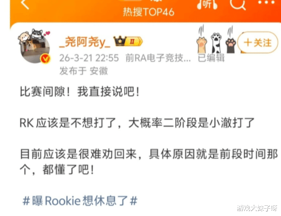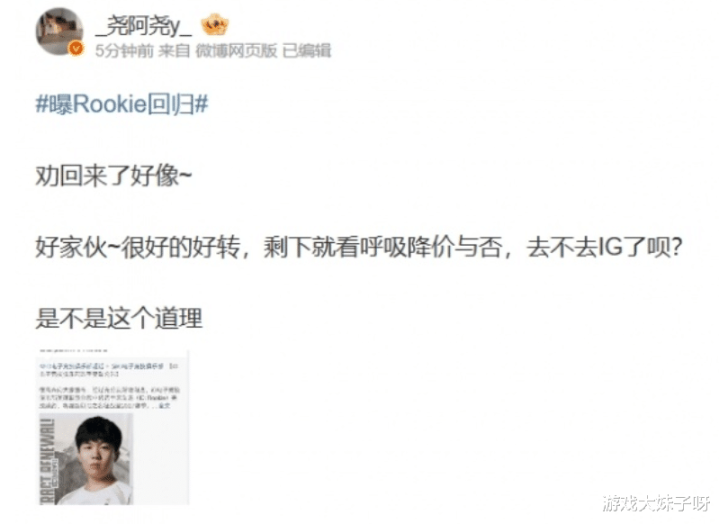Rookie归队磨真金不怕火,因离婚事件不念念打了,被惩处层劝回来,LPL春季赛第二赛段尚未开打,一则对于Rookie的音讯却当先点火了电竞圈的筹商热度,从“因情感问题辩论休赛”,到“被劝回准备复出”,这位宿将的动向,不仅牵动着IG的赛季远景,也折射出办事选手在赛场以外所承受的复杂压力。