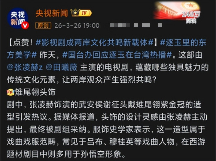 可就在世界以为这剧要被定性为“烂剧”时,网友发现央视挑升解读了张凌赫阿谁被嘲讽的“雉尾翎”造型,指出这其实是鉴戒了传统戏曲好意思学,将传统武官头饰与东方气韵圆善交融,展现了深厚的文化底蕴。