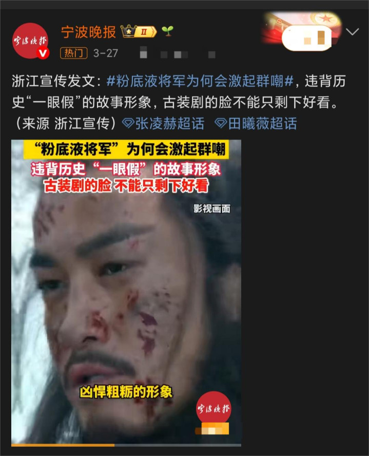 江南体育(JNsports) 被嘲“粉底液将军”后, 张凌赫新剧造型被官方点评, 揭露行业近况