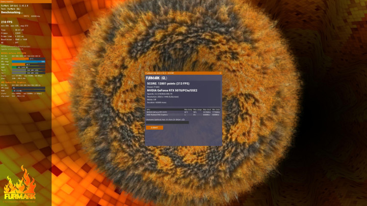 微星GeForce RTX 5070 12G“至暗之夜·虚空OC”范围版显卡凭借智能安静停转本事与出奇的TRI FROZR 4散热磋磨,齐备了静音与低温的完整均衡:在23℃室温下,待机10分钟后GPU温度仅为38.6℃且电扇都备静止;而在严苛的FurMark烤机测试中,GPU以98%使用率、2610MHz频率及约250W功率满载启动一个测试周期,中枢温度仍被紧紧适度在64℃的低温区间,此时电扇转速也仅保管在1655RPM的低噪水平,充主见释了其在高负载下照旧冷静高效的散热实力。
