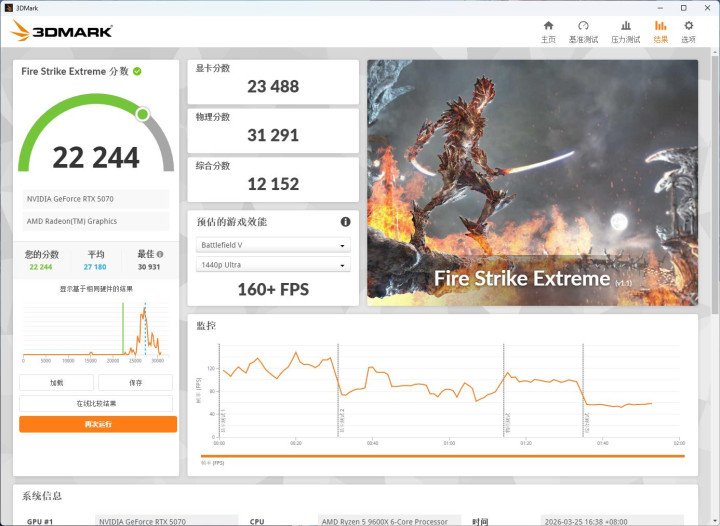 在3DMARK Fire Strike Extreme与Time Spy的严苛试真金不怕火中,微星RTX 5070 12G“至暗之夜·虚空OC”范围版展现了越过公版的强悍实力,其出厂预超频的“虚空”中枢在2K分辨率下势如破竹:Fire Strike Extreme得分22244,解释了其在传统光栅化渲染中如圣光般纯正的爆发力;而Time Spy测试则进一步考证了其对DX12引擎的完整支配,即便在模拟艾泽拉斯复杂粒子殊效的高负载场景下,帧率照旧稳如磐石,不仅17011的跑分足以让玩家在最高画质下冷静应酬夙昔数年的3A大作挑战。