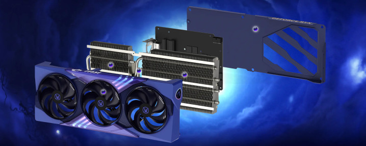这款联名显卡的外不雅磋磨,将“虚空好意思学”知道到了极致,不管是合座造型如故局部细节,都经得起反复试吃,放在机箱中,自己就是一起极具不雅赏性的征象。显卡合座领受三电扇磋磨,电扇尺寸为90mm,扇叶领受非常的龙爪纹理磋磨,不仅能够擢升风压与风量,更与虚空主题秘要呼应,仿佛是被虚空能量浸染的利爪,随时准备扯破敌东说念主的防地。