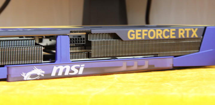 显卡顶部印有金色的“GEFORCE RTX”与微星龙盾LOGO,其中LOGO扶植ARGB灯效,可通过微星Center软件进行自界说退换,灯光颜料与亮度可收缩切换,既能呈现出深重的阴影黑,也能切换成虚空蓝、幽紫等配色,完整适配不同的机箱灯光作风。更贴心的是,显卡顶部还磋磨了16pin供电接口,接口周围印有浅浅的虚空纹路,既保证了供电的慎重性,又不破裂合座的磋磨好意思感,细节之处尽显匠心。