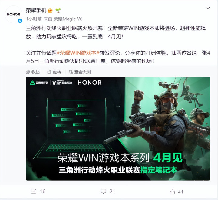 荣耀官耿直式官宣:全新荣耀 WIN 游戏本将于 4 月重磅发布,同期手脚《三角洲行为》烟火工作联赛官方指定条记本,以超神性能为电竞玩家与工作选手添砖加瓦,助力全场猛攻得吃、一赢到底!