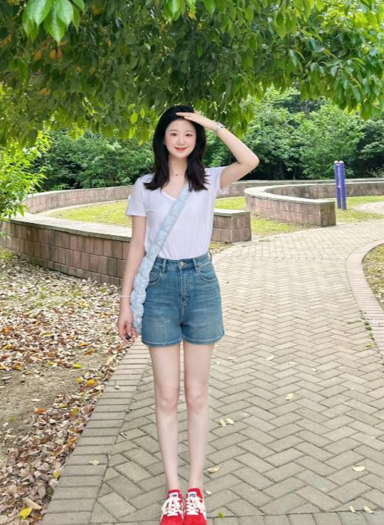 春日穿搭切记不要太过保守,学会适合“留白”。果敢的秀出好形体,穿出街才会更有回头率。比如红色的德训鞋,就很允洽搭配牛仔短裤,炫耀双腿线条,显白又显瘦。