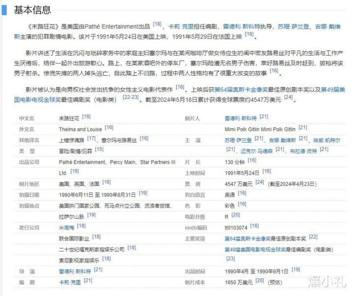 可我还确实找到了这部电影,应该是1991年,雷德利·斯科特导演的电影《绝路狂花》,这部电影叙述了家庭主妇和女侍应生之间的爱情故事,有东说念主说这部电影是向男权社会发出造反的女性方针电影代表作,可实质上这是一部默示是女同的电影,若是这样一说,岂不是就变相默示了疾风和张姐之间会不会即是这样一种关系呢?