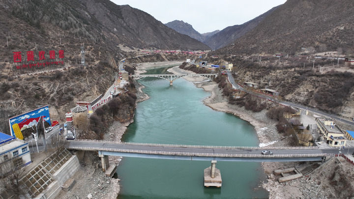 这是2026年2月8日拍摄的西藏昌皆市江达县岗托村左近时势(无东说念主机相片)。新华社记者党黎摄